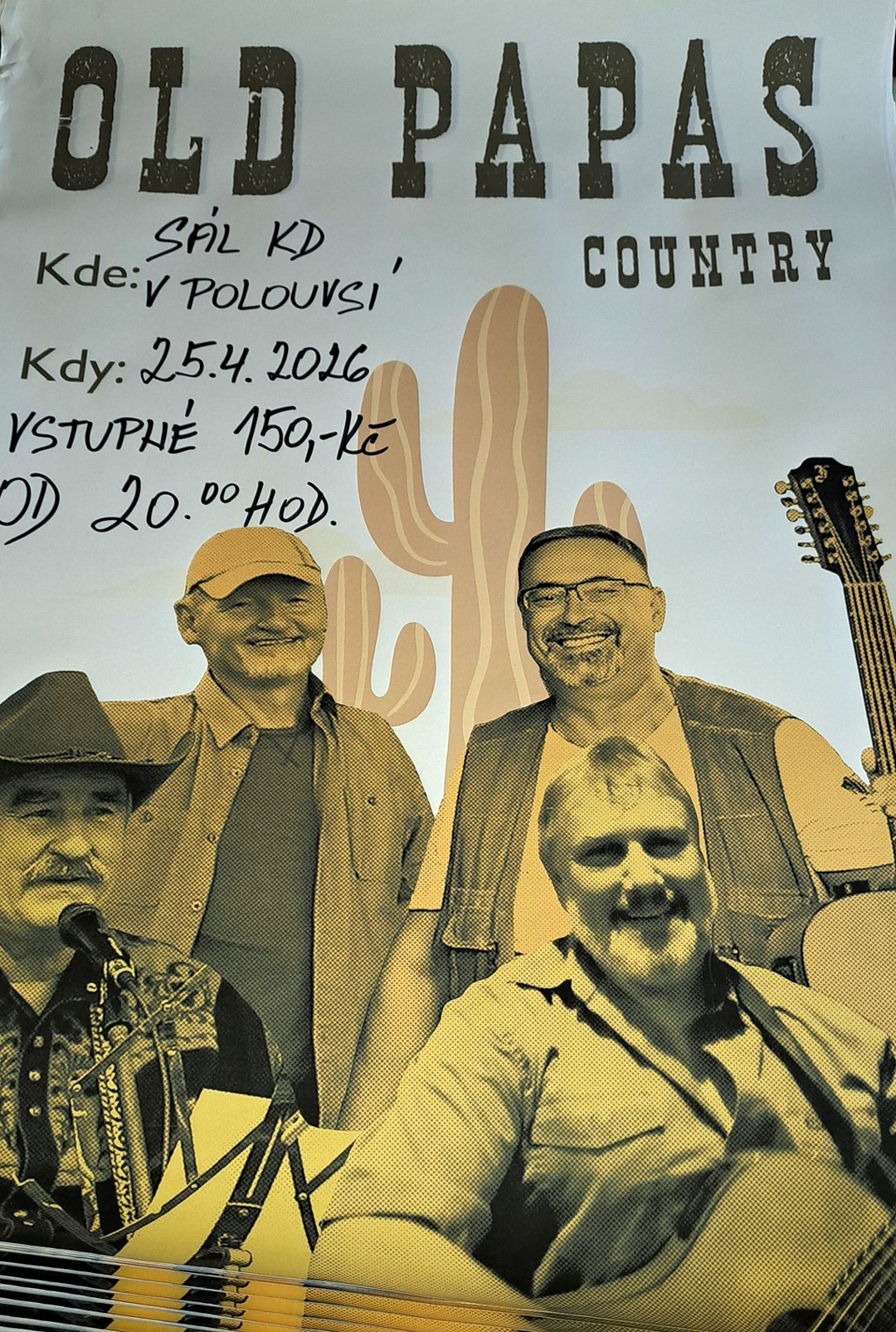 sobota 25. dubna 2026, 20.00 – Country zábava Old Papas – KD Polouvsí