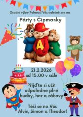 sobota 21. února 2026, 15.00 – Párty s Čipmánky – KD Polouvsí
