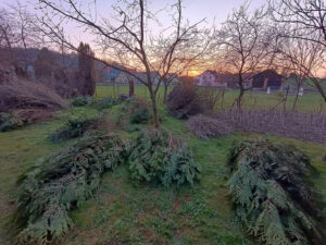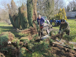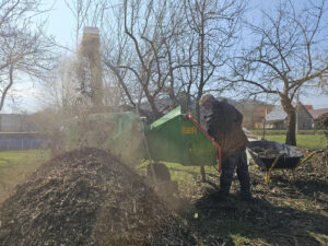 – ostatní biomateriál, který nebyl vhodný ke štěpkování, jsme na traktorové vlečce odvezli ke kompostování.