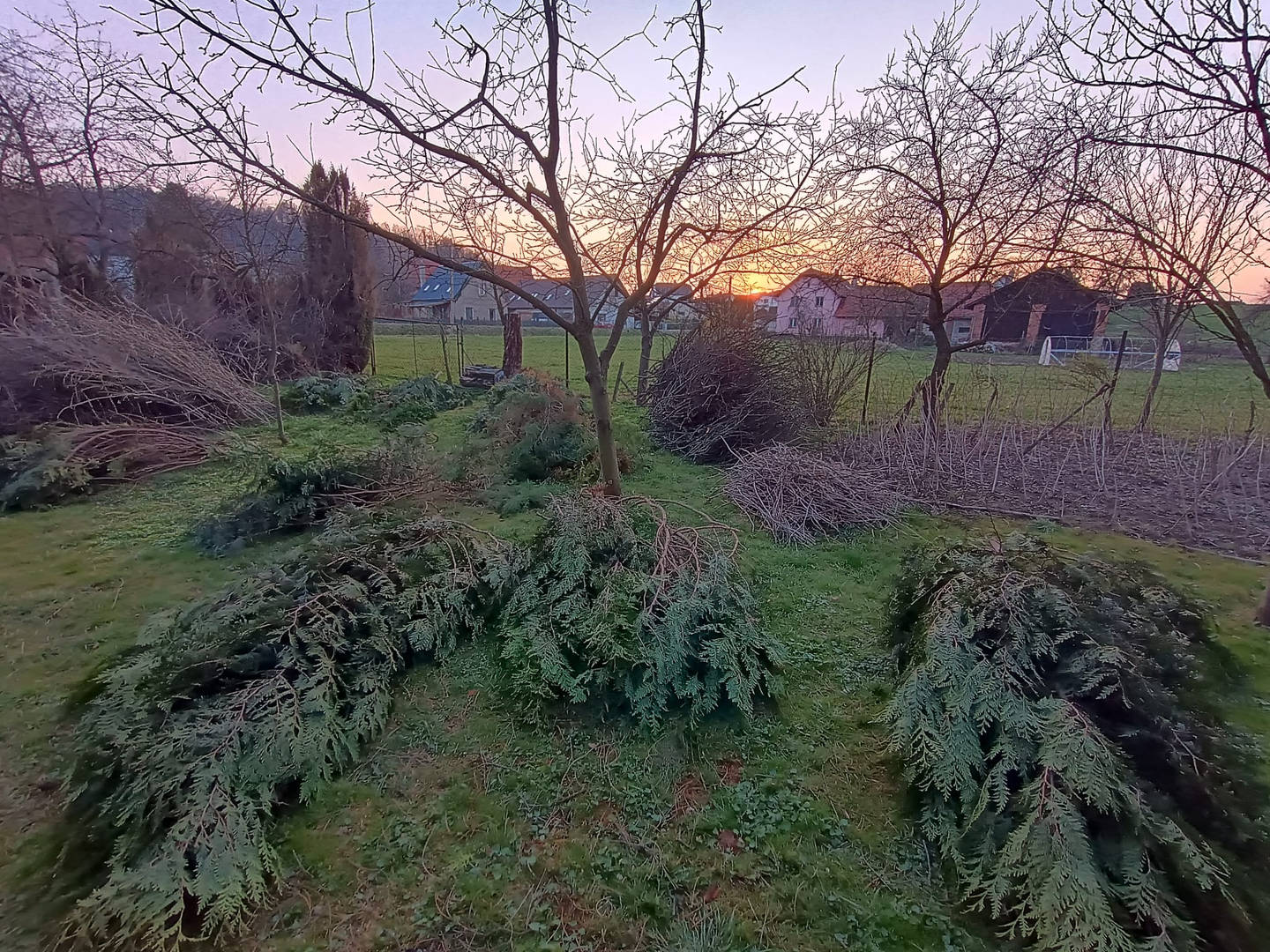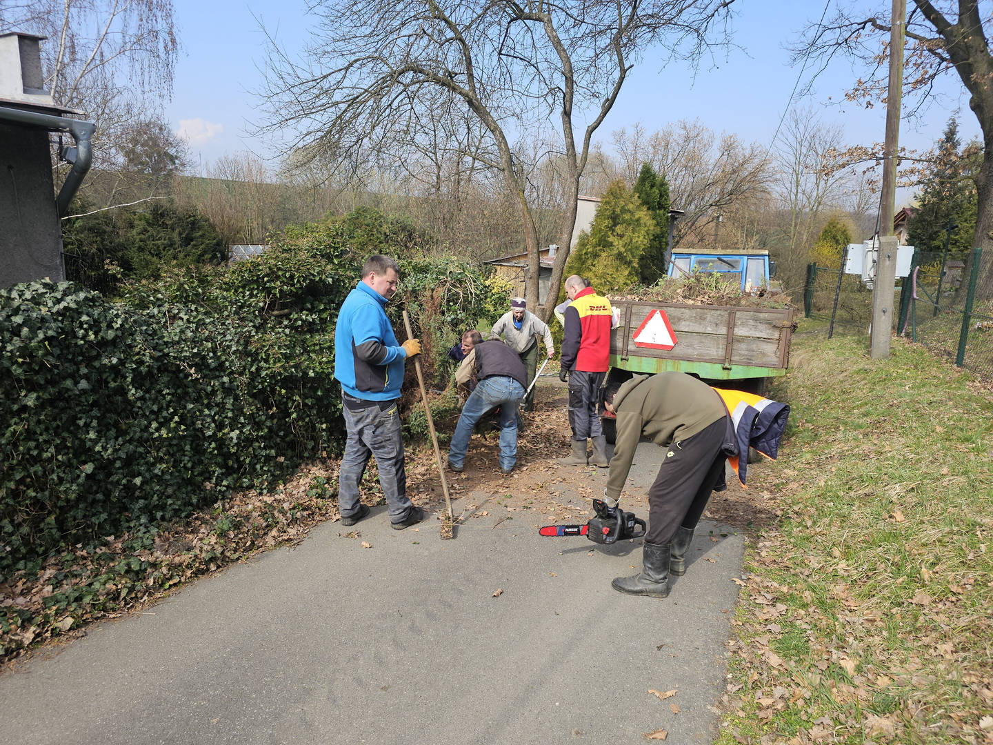 V neděli 22. března 2026 se skupina místních dobrovolných hasičů sešla na brigádě u dolní louky. Cíl byl jasný: pomoci paní Janovské s prořezem dřevin a celkovým úklidem zahrady, na který už sama nestačila.
