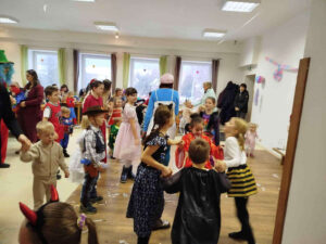 Program odstartoval v 15 hodin a od samého začátku bylo na parketu živo. Mezi maskami nechyběli oblíbení superhrdinové, princezny, zvířátka ani tradiční pohádkové bytosti. Pořadatelé (manželé Pantůčkovi) si pro děti připravili odpoledne plné pohybu a radosti.