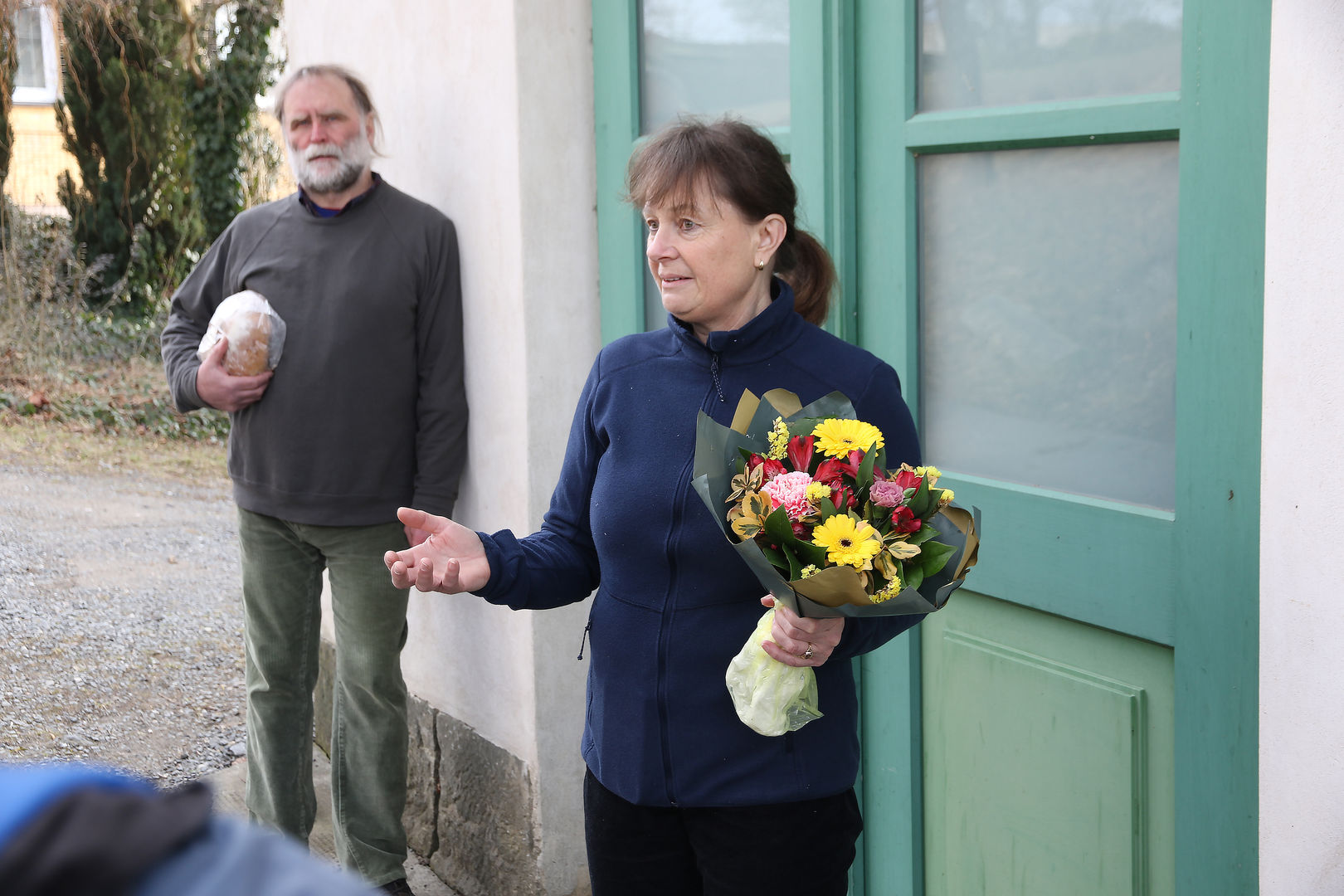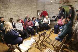 Zázemím se nám stal bývalý zájezdní hostinec (čp. 8), v jehož citlivě obnovených sklepních prostorách čekalo posezení a drobné občerstvení. Po vzájemném předání darů jsme se rozdělili na dvě skupiny: