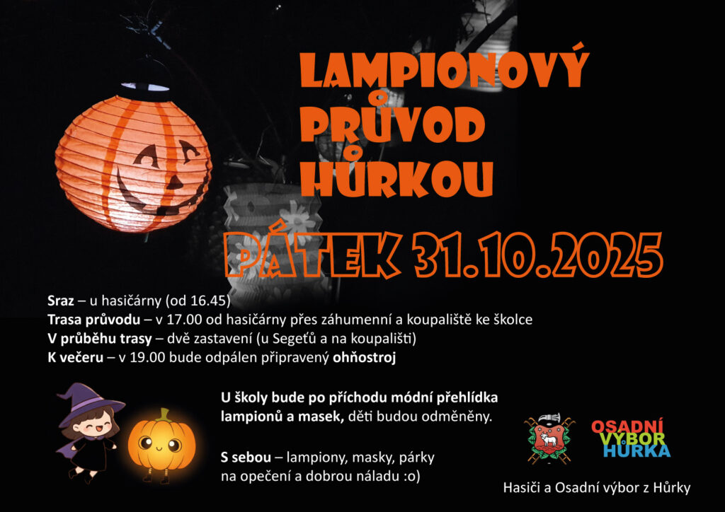 Zveme malé i velké na Lampionový průvod Hůrkou v pátek 31. října 2025.
