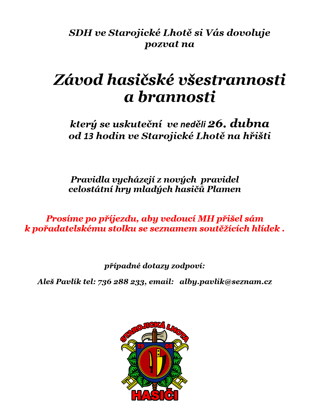 | neděle | 26.04.2026 | 13.00 | Starojická Lhota | ZHVB | MH |