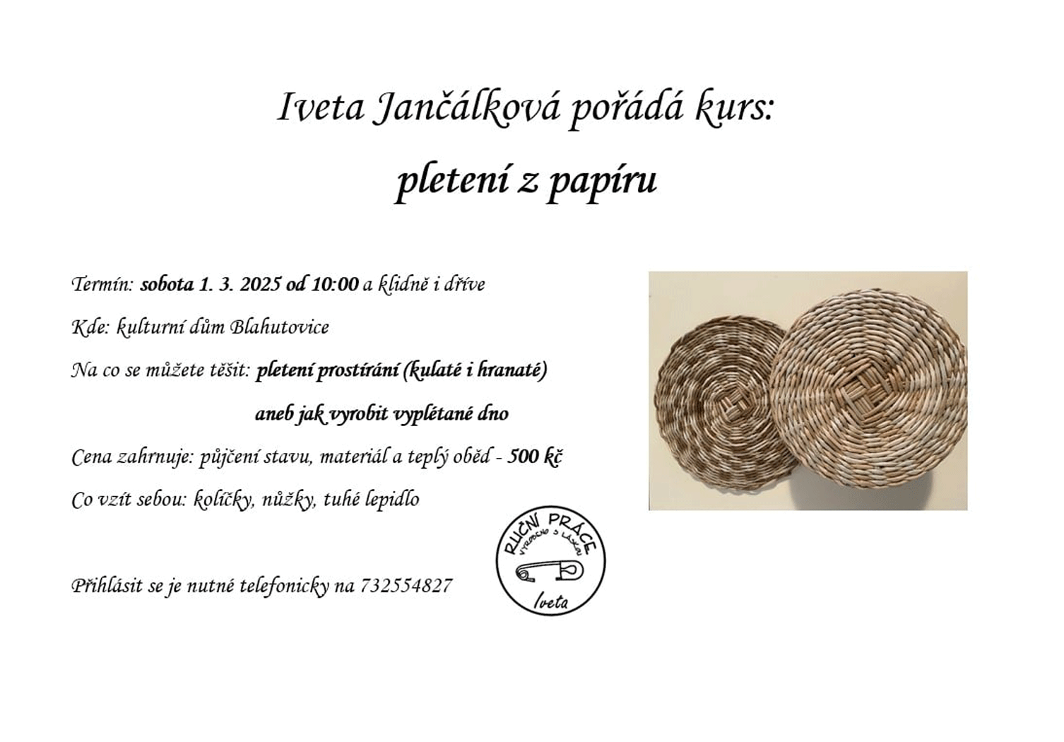 sobota 17. května 2025, 10.00 – přesunuto na 15.6.2025