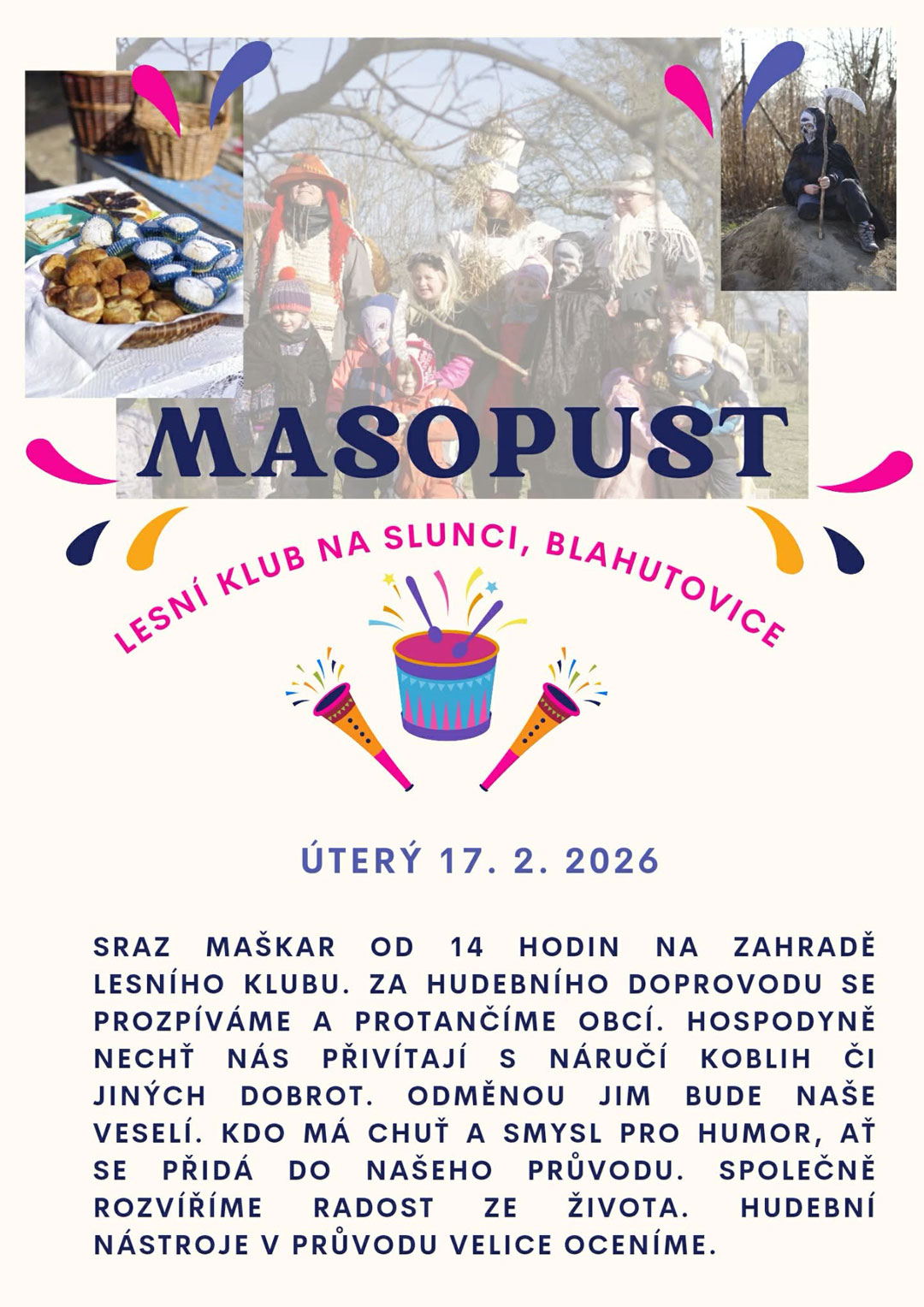 úterý 17. února 2026, 14.00 – 17.00 – Masopust