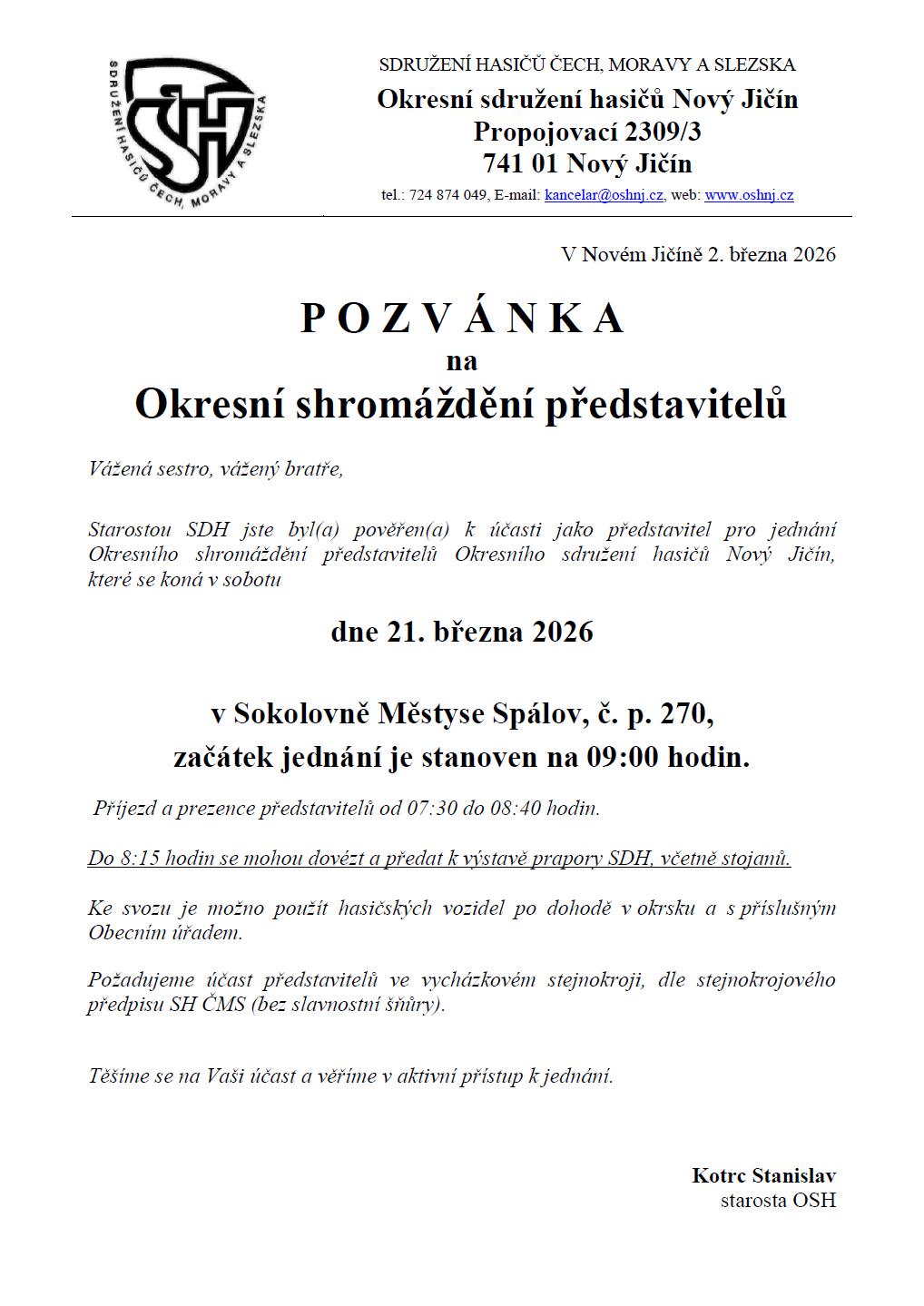 Výroční valná hromada SDH okrsku Starý Jičín –